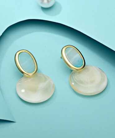 Simple White Blue Contrast Color Geometric Shape Earrings Accessories